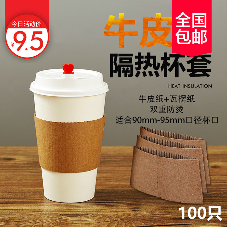 使い捨て厚手クラフト紙カップカバーパーマ防止カップカバーコーヒーカップカップミルクカップジュース断熱紙カバー100
