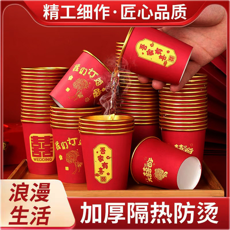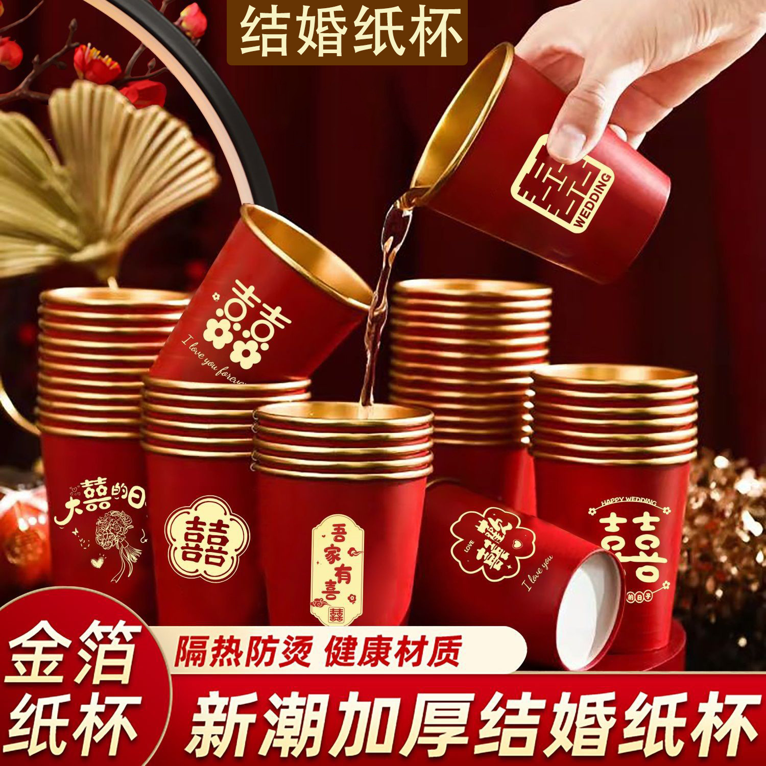 【熱売中】結婚式の赤い金箔の紙コップ結婚祝いの紙コップ用品大全使い捨てコップの結婚式