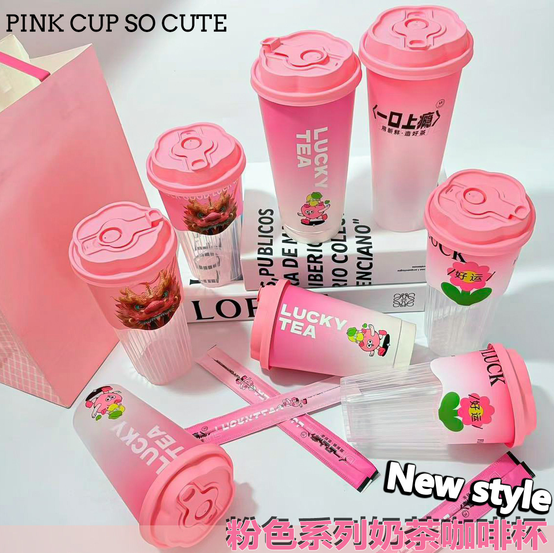 ピンクのミルクカップのグラデーション色の紙コップのコーヒーカップの膜の中にミルクカップを貼って、使い捨ての二重中空紙コップを厚くします。