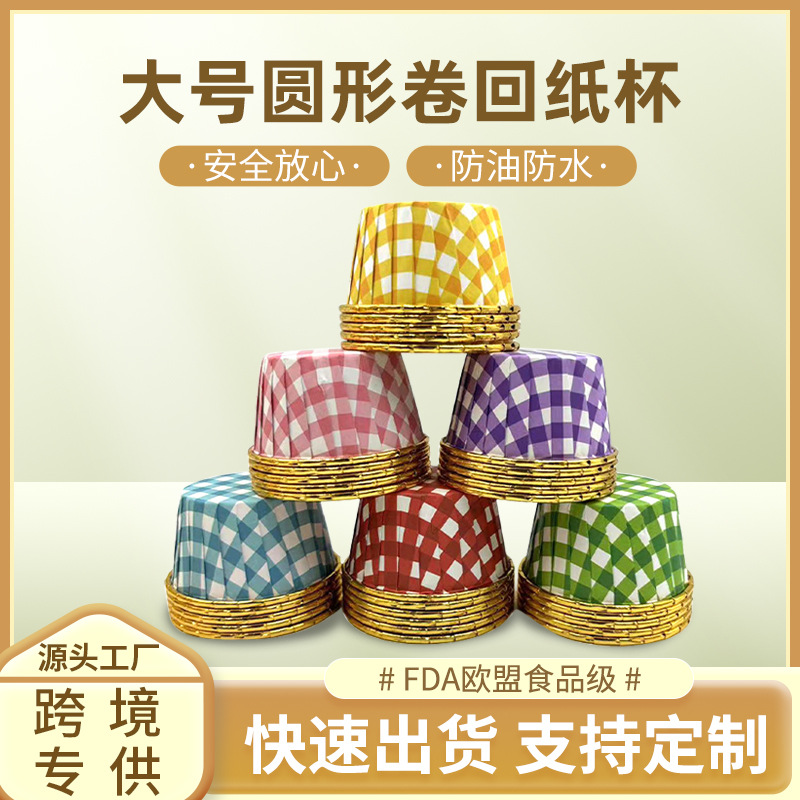 Amazon 大型 5039 ケーキ紙カップ高温耐性コーティングされたオーブンベーキング紙カップ使い捨てチェック柄カーリングカップ