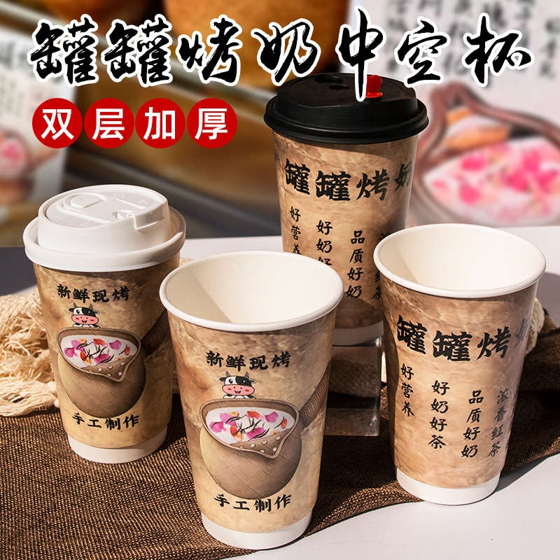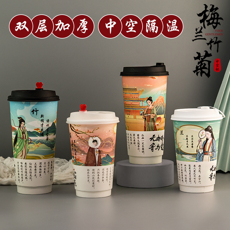 90使い捨てコーヒーミルクティー紙コップ二重中空厚い国風ネット赤商用ミルクティー店コーヒーカップ