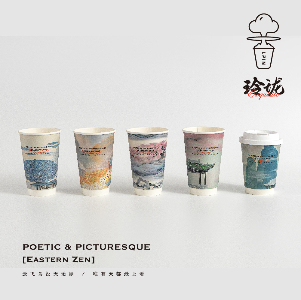 喜上眉間文創国風紙コップセット環境保護断熱創意使い捨てコーヒーミルクティーカップ