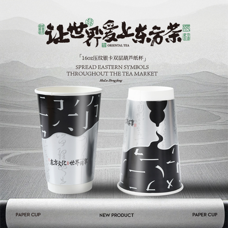90口径のヒョウタンの紙コップの高級な銀カードの二重の熱いミルクティーのテイクアウトの包装のコップの新しい中国風の口のコップ