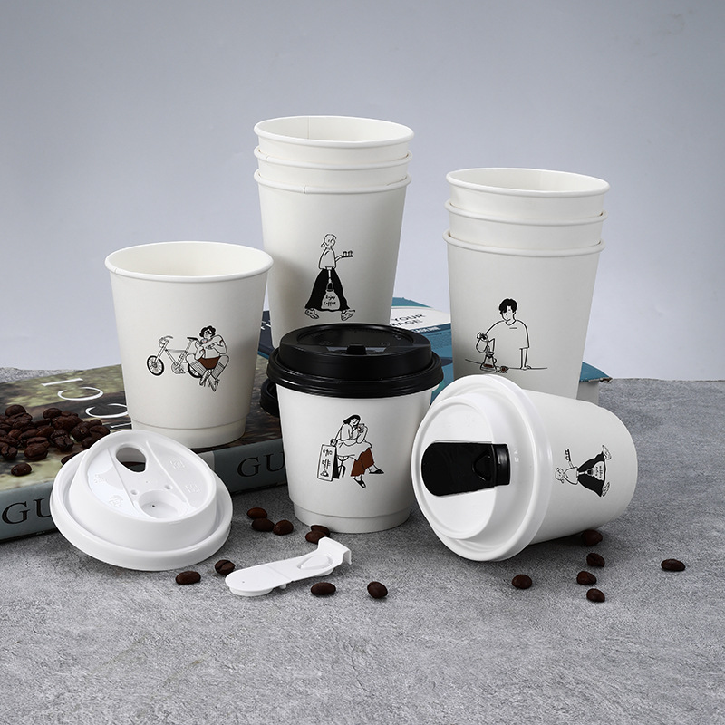 コーヒーカップ使い捨て外付け梱包カップ蓋付き二重紙コップ断熱厚手ミルクティー中空ホットカップ