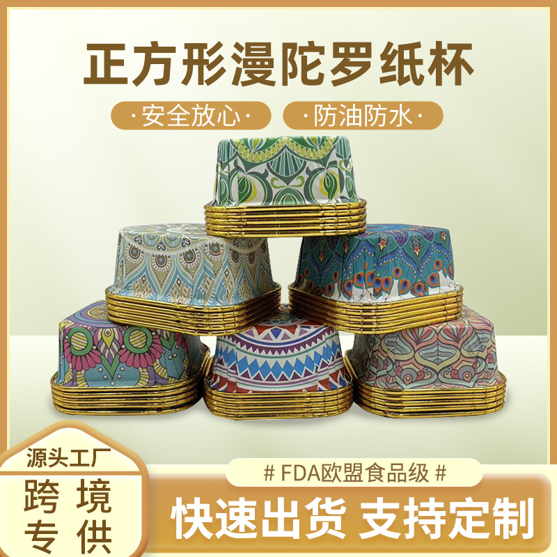 Amazon ケーキカップ正方形高温耐性マフィン紙トレイカップ増粘金と銀のコーティングされた錫箔ロールカップ