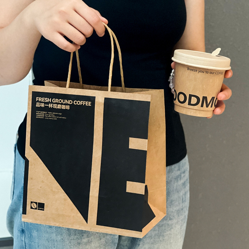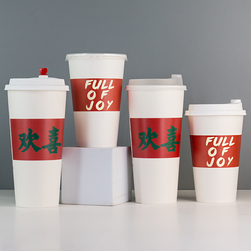 Guochao ロゴ付き使い捨てミルクティーコーヒー紙カップ、商業用テイクアウトインターネットセレブ紙カップホットとコールドのダブルドリンク