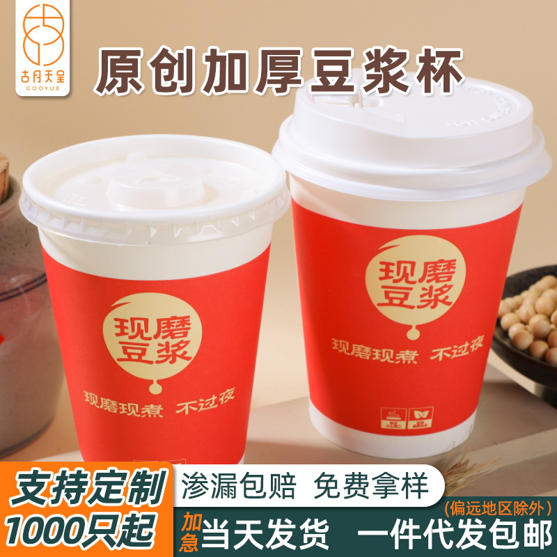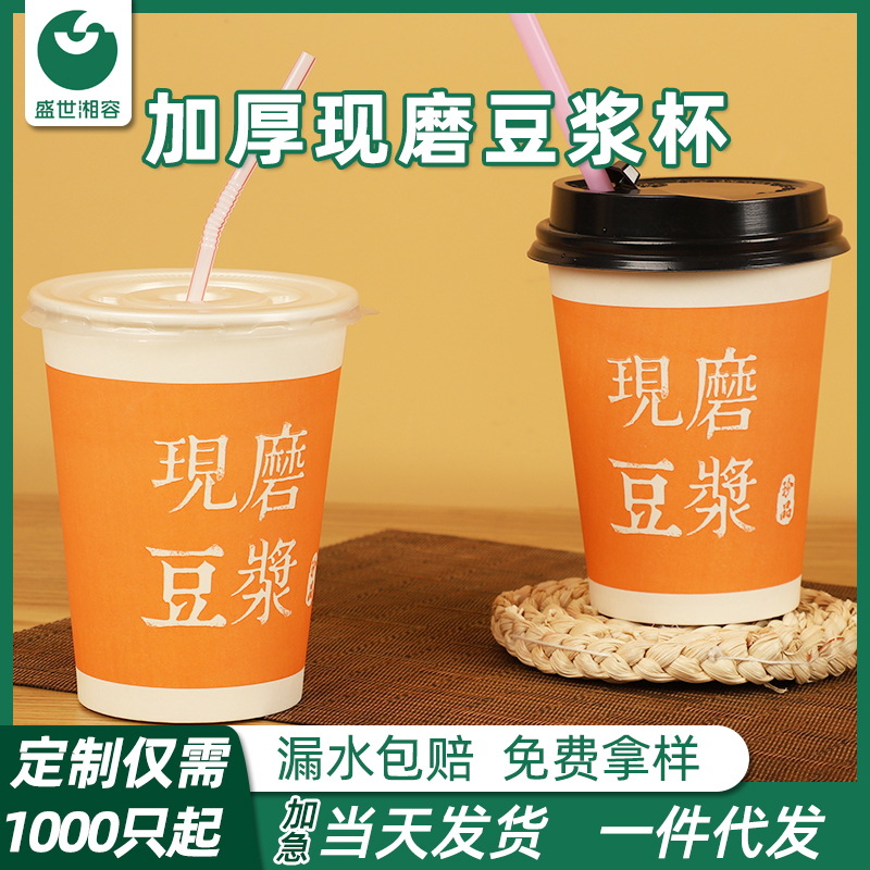 豆乳コップの使い捨て業務用蓋付き朝食粥のテイクアウトパッケージカップ家庭用カスタム豆乳カップ