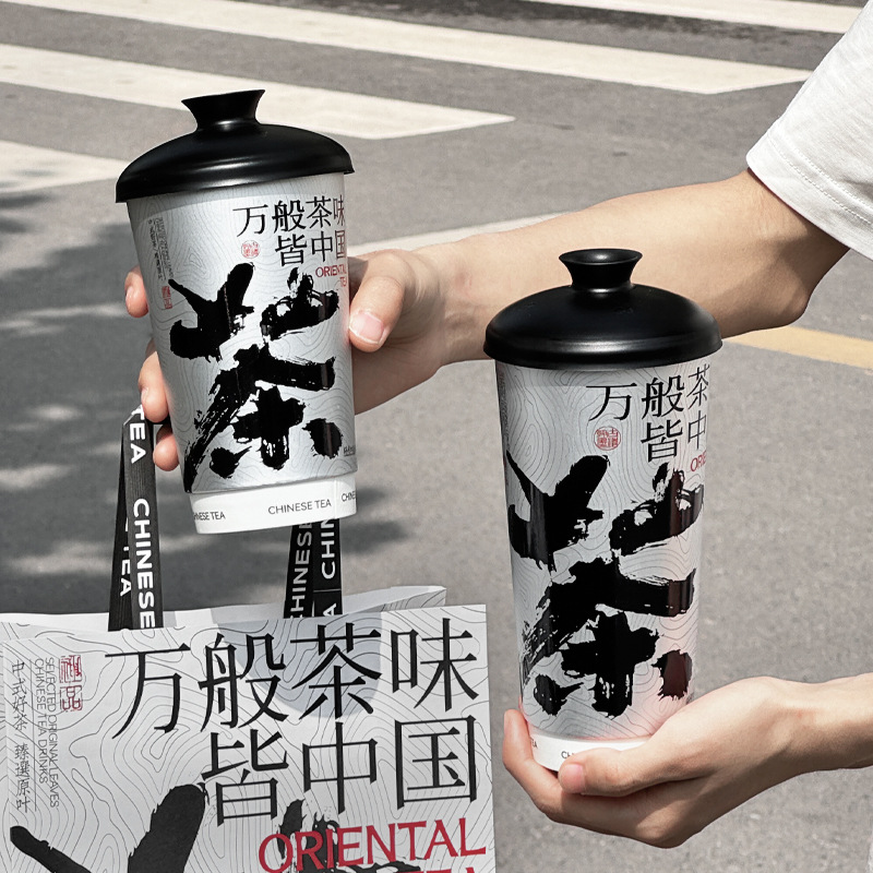 新中国式ティーカップ国風使い捨てミルクティーカップネット赤ホットカップ500ml商用卸売りカスタム印刷