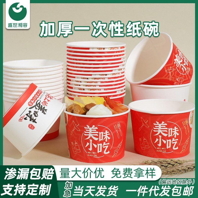 使い捨ての紙の碗の卸売りは厚い蓋を持ってカスタマイズして業務用のカップラーメンのピクニックの箱の紙の店を作って外に出して碗を包装します。