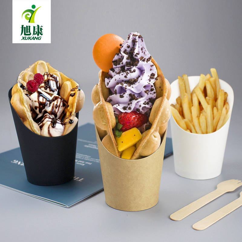 卸売りの卵の牛皮の斜めの口のコップのポテトチップスのコップの使い捨ての紙のコップのロゴのクラフト紙のコップの卵のコップ