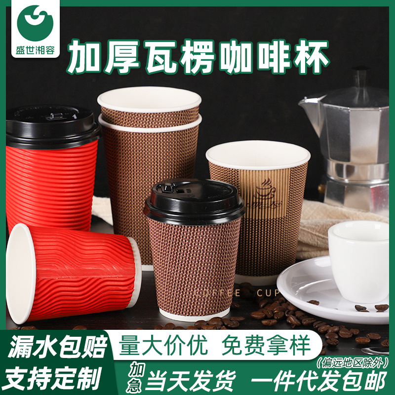 コーヒーカップ使い捨て紙コップ蓋付きネット赤高颜値厚さ防止二重カップ外付け包装カップ定印刷