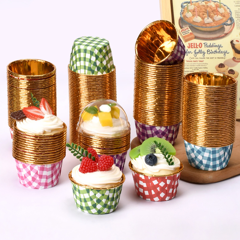 厚い蓋付き金銀淋膜巻き口カップ大サイズ5039マフィンケーキ点高温焼きカップ馬芬杯托50個