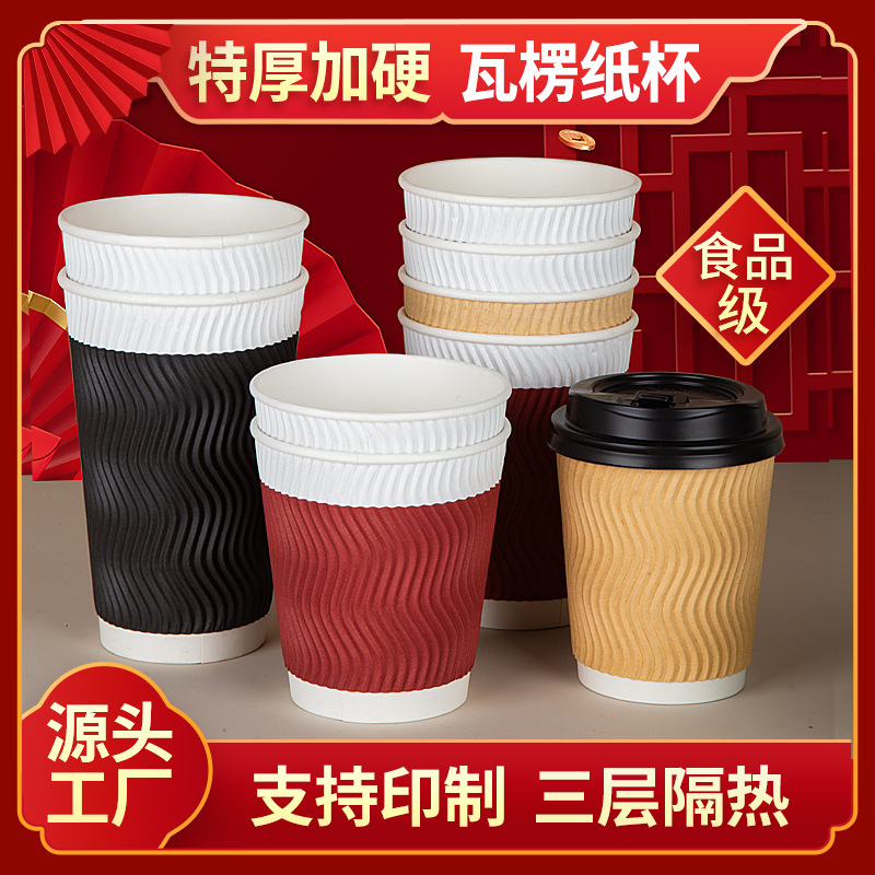 使い捨て段ボール二重波紋蓋付きホットドリンク紙コップカスタム厚い断熱段ボールコーヒー豆乳カップ