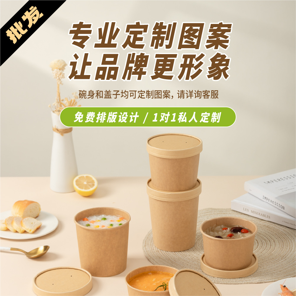 メーカーの小ロットはお粥の桶を注文して、一度に蓋を持って外に出して箱のクラフト紙の碗のお粥の杯のおでんのスープの杯を注文します。