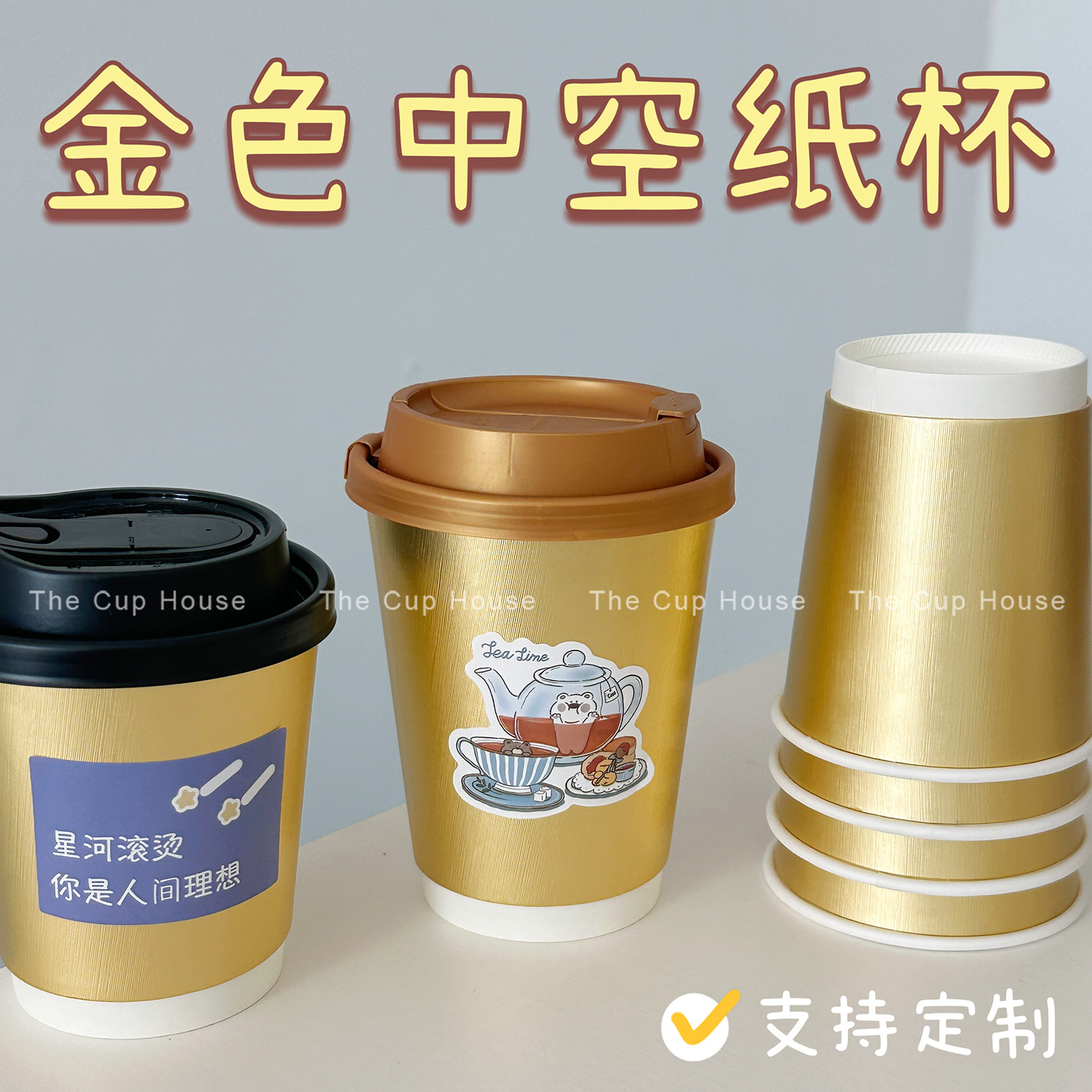 金色の紙コップ使い捨てコーヒーカップティードリンク紙コップ商業ミルクティー紙コップホットドリンク蓋付き二層紙コップ