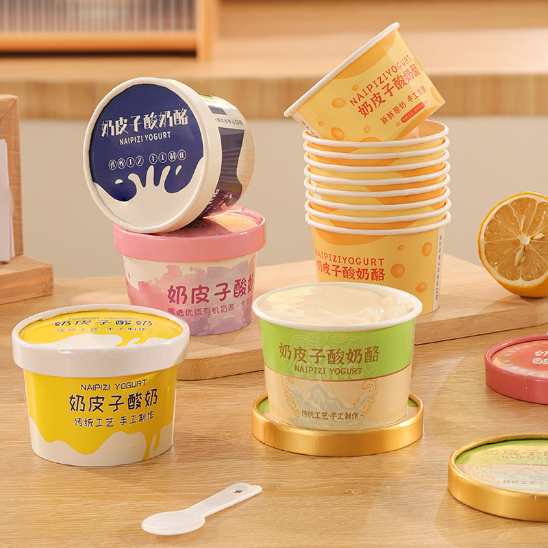 ヨーグルトカップ使い捨て包装箱増粘紙カップ発酵蓋付きスプーン卸売食品グレードのカスタマイズ