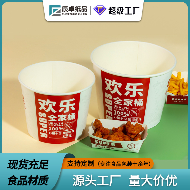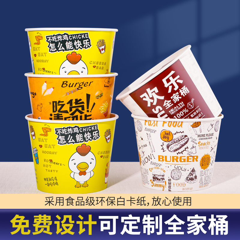 使い捨てフライドチキン缶包装箱カスタム防油スポット全家桶軽食紙桶蓋付きポップコーン缶卸売り