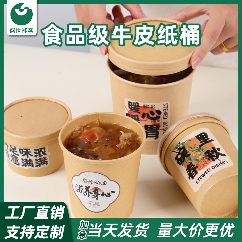 粥桶使い捨てクラフト紙スープ桶の出前梱包弁当箱焼き梨紙コップはロゴ円形梱包箱を印刷することができる