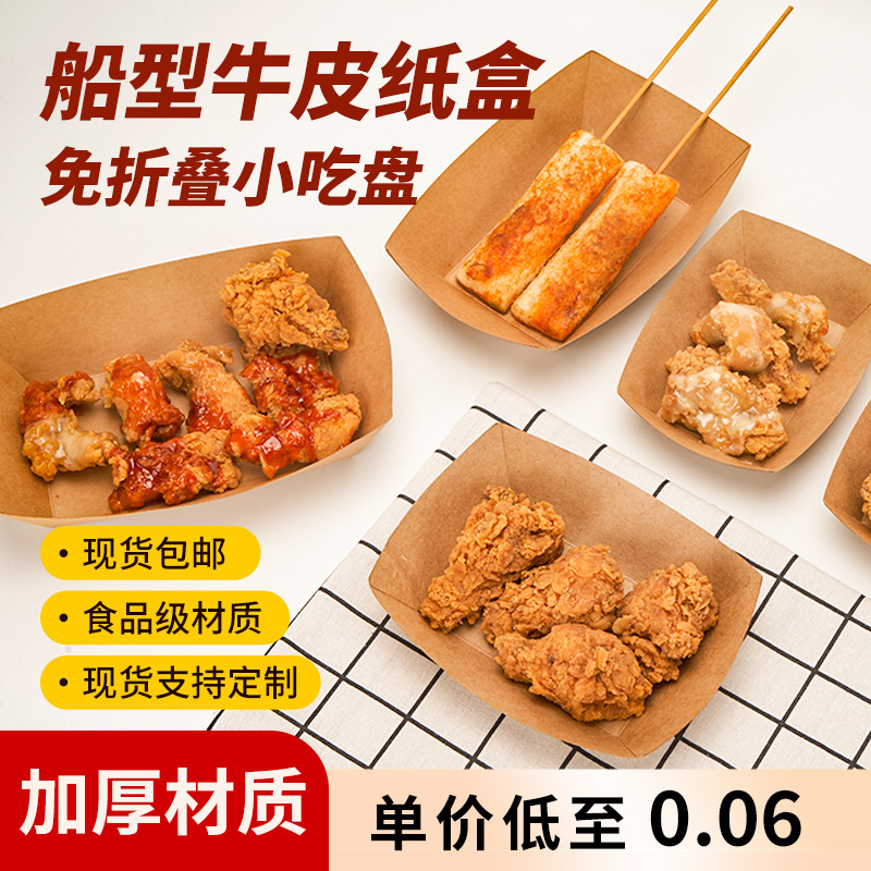 クラフト紙の船の箱の船の碗の使い捨ての弁当箱のテイクアウトの包装箱のバーベキューの揚げ物の包装箱の厚い紙の碗