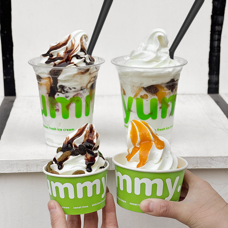 4オンスチョコレートアイスクリーム紙コップボウルケーキアイスクリーム箱68紙コップ蓋プリンコップカスタム