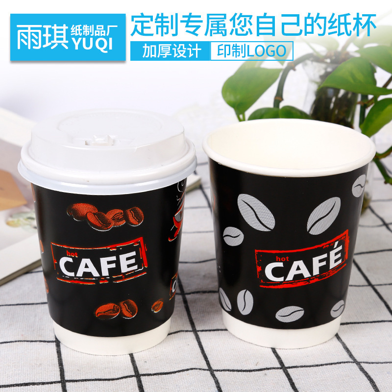 使い捨て断熱パーマ防止紙コップ家庭用二重紙コップ厚手広告カップコーヒーミルクティー紙コップはロゴを印刷できる