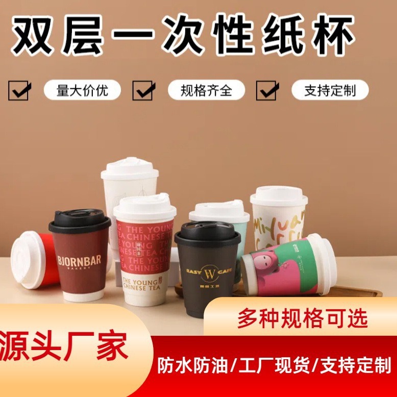 メーカー現物使い捨て二重中空厚手紙コップコーヒーミルクティーショップ用飲料カップ多規格可現物