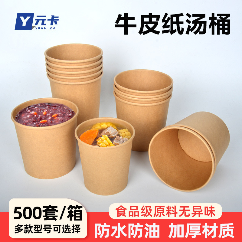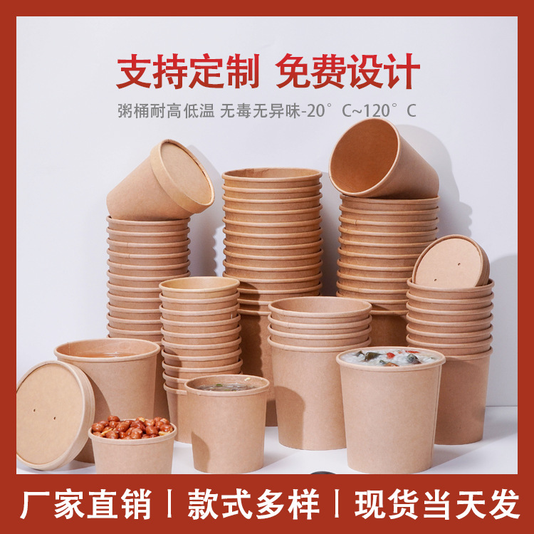 現物使い捨てクラフト紙スープ桶粥カップ養生スープ出前包装箱朝食粥豆乳防水油スープボウル