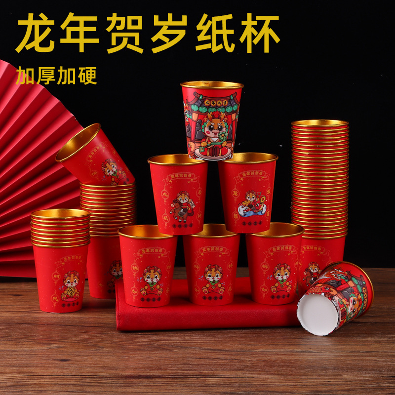 結婚使い捨て紙コップ金箔厚手結婚式祝杯披露宴コップ家庭用赤いウェディングカップ
