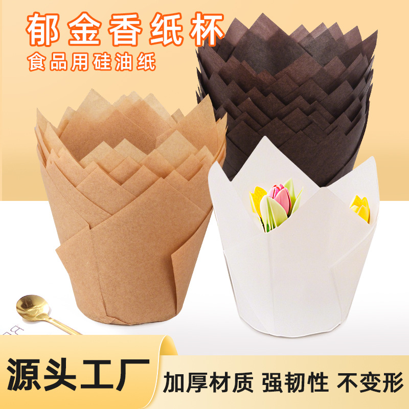 国境を越えた食品グレードの耐油性ソリッドカラーチューリップ紙カップ家庭用エアフライヤー耐性のあるケーキ紙カップマフィンカップ