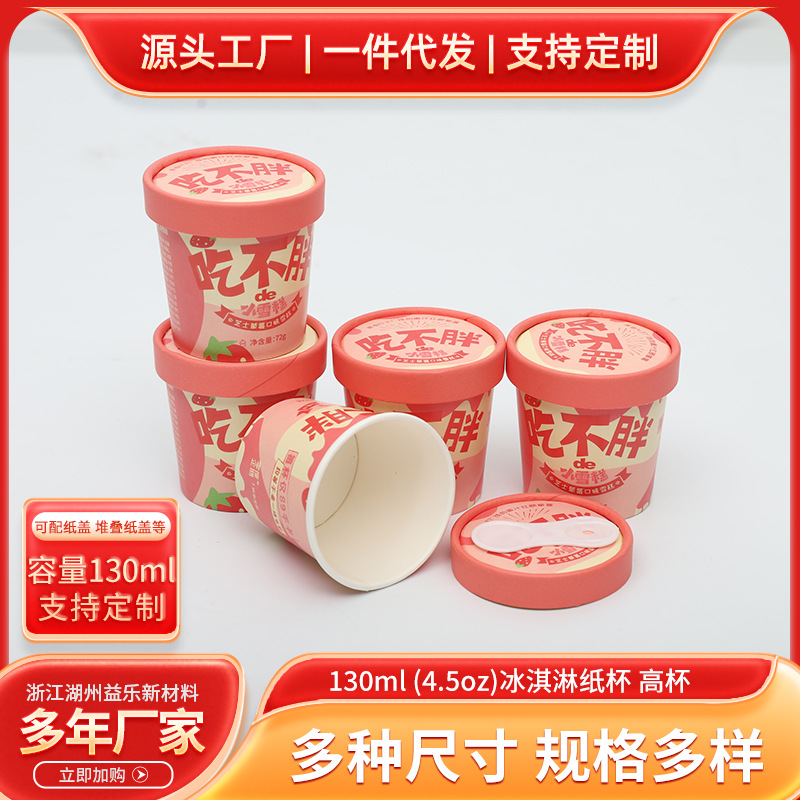 ネット赤アイスクリーム紙コップ使い捨てアイスクリームボウル防滴カップリング紙托甜筒紙カバー歯切れ皮筒包装紙