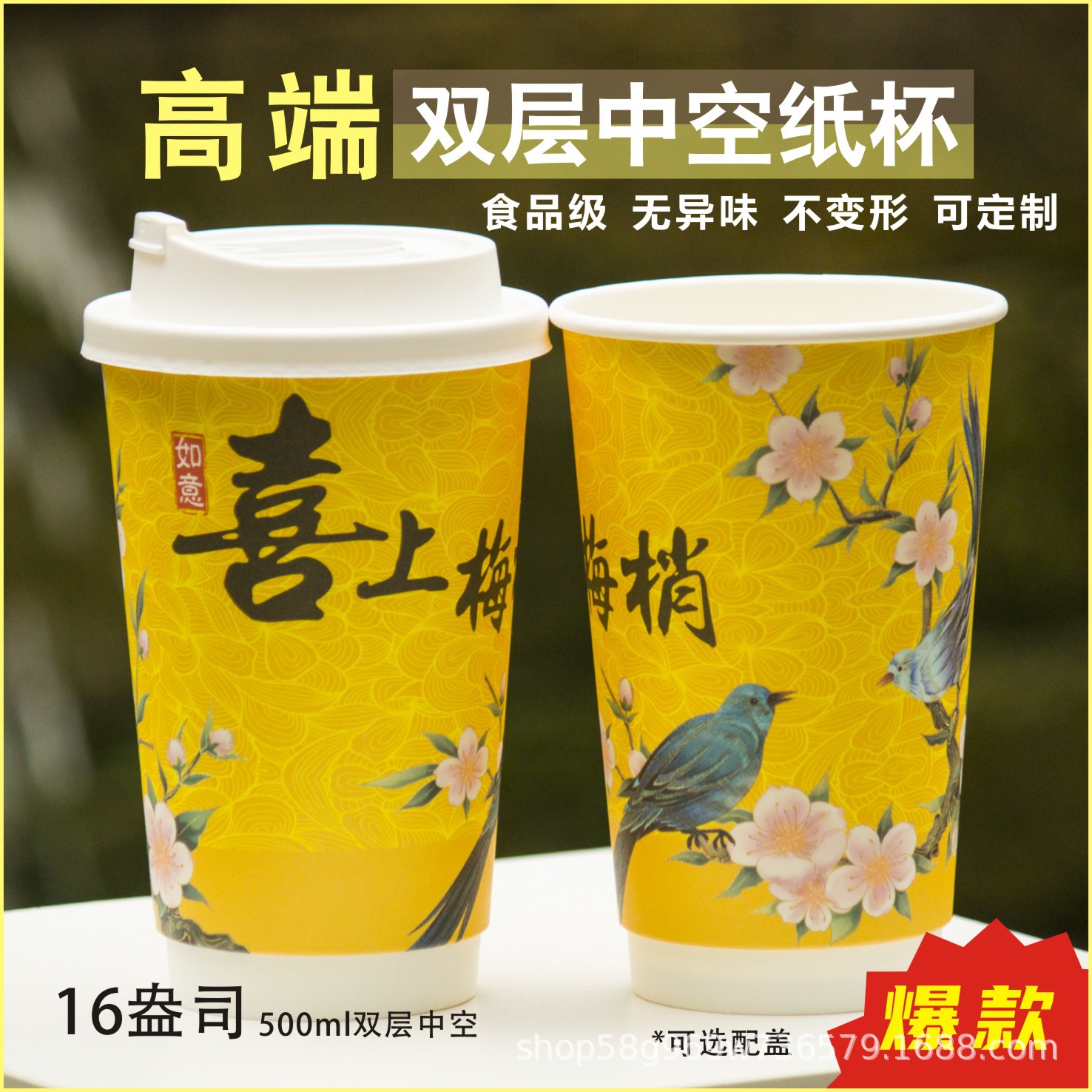 スポット使い捨て中空紙コップコーヒーミルクティー外付け包装コップ卸売り家庭用漏れ防止断熱紙コップ