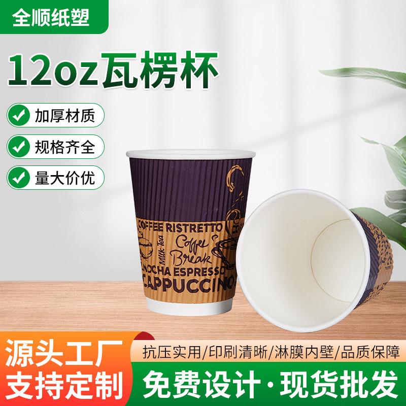 12オンス使い捨てコーヒー紙コップ販売業務用ホットドリンク段ボール二重厚さ断熱コーヒー模様紙コップ