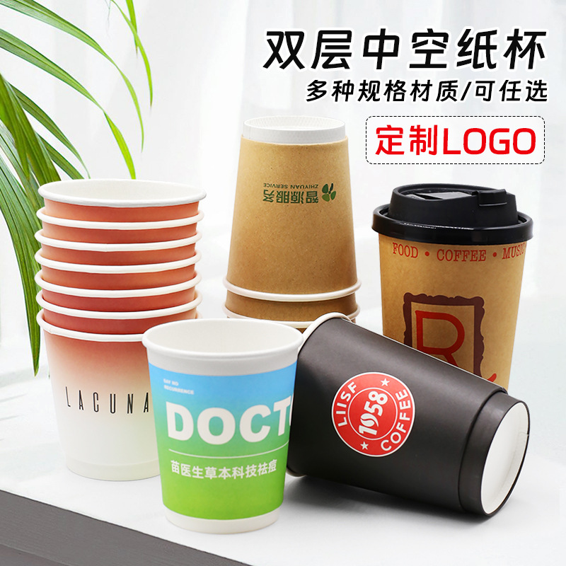 使い捨てコーヒーカップ二層増粘クラフト紙断熱熱湯防止ホットドリンクミルクティーテイクアウト商業中空カップ全箱