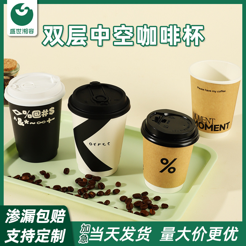 コーヒーカップ使い捨て外付け梱包カップ二重パーマ防止カップ厚品質品質蓋付き中空紙コップカスタム