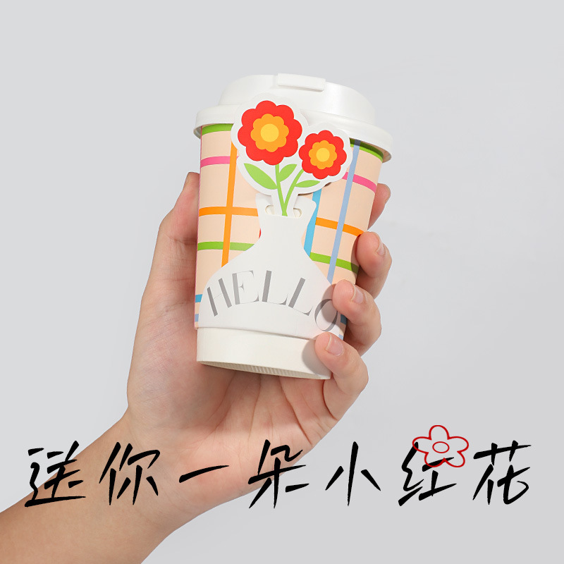 春のコーヒーカップ使い捨てオーダーメイドミルクティー紙コップ創意生け花冷たい飲み物のテイクアウト包装コップの蓋付き