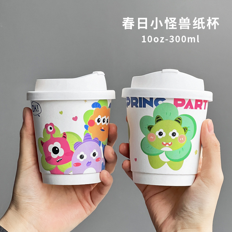 かわいいクリエイティブコーヒーカップ使い捨てミルクティー紙カップホットドリンク包装カップ蓋付き商用カスタムロゴ