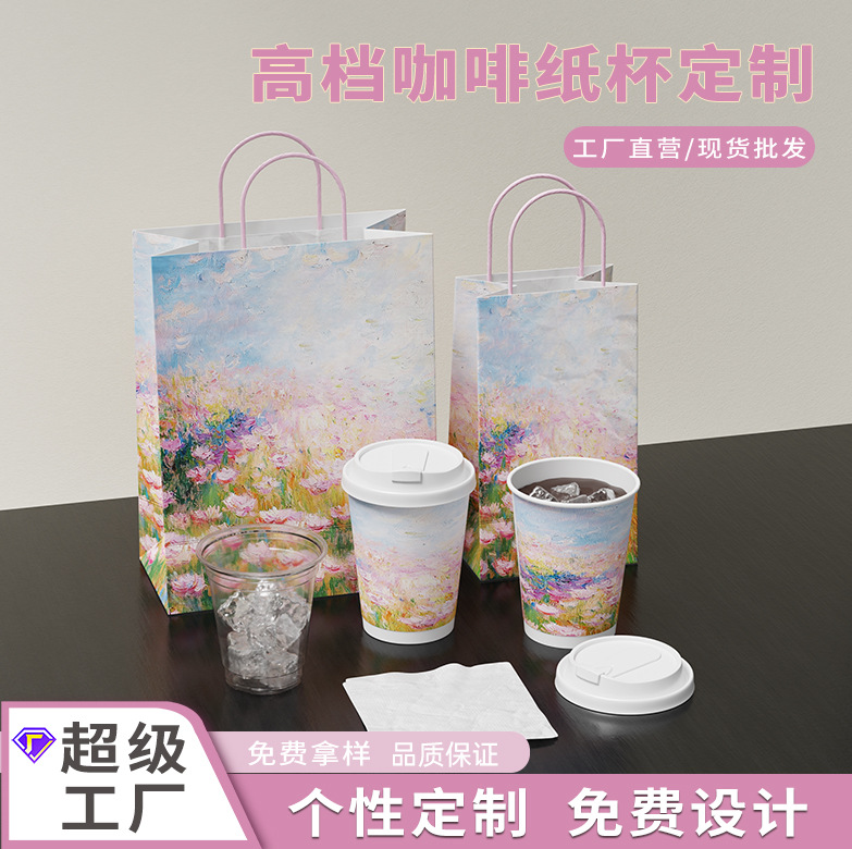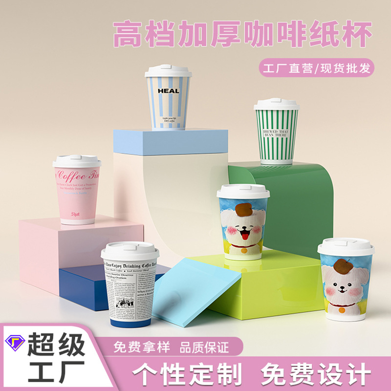 コーヒーカップ使い捨て袋蓋ホットドリンクミルクティー店専用紙コップ中空カップ包装外売りカップ印刷ロゴ