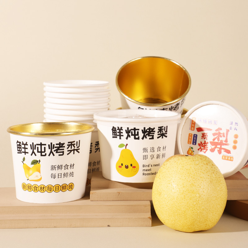 盛世湘容金箔焼き梨包装箱卸売りは商用で蓋付きの新鮮な煮込み焼き梨紙コップを厚くした