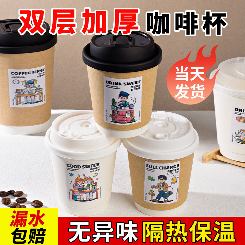 二重中空使い捨て蓋付きミルクティーコーヒー豆乳断熱テイクアウト包装牛皮熱飲紙コップカスタマイズ