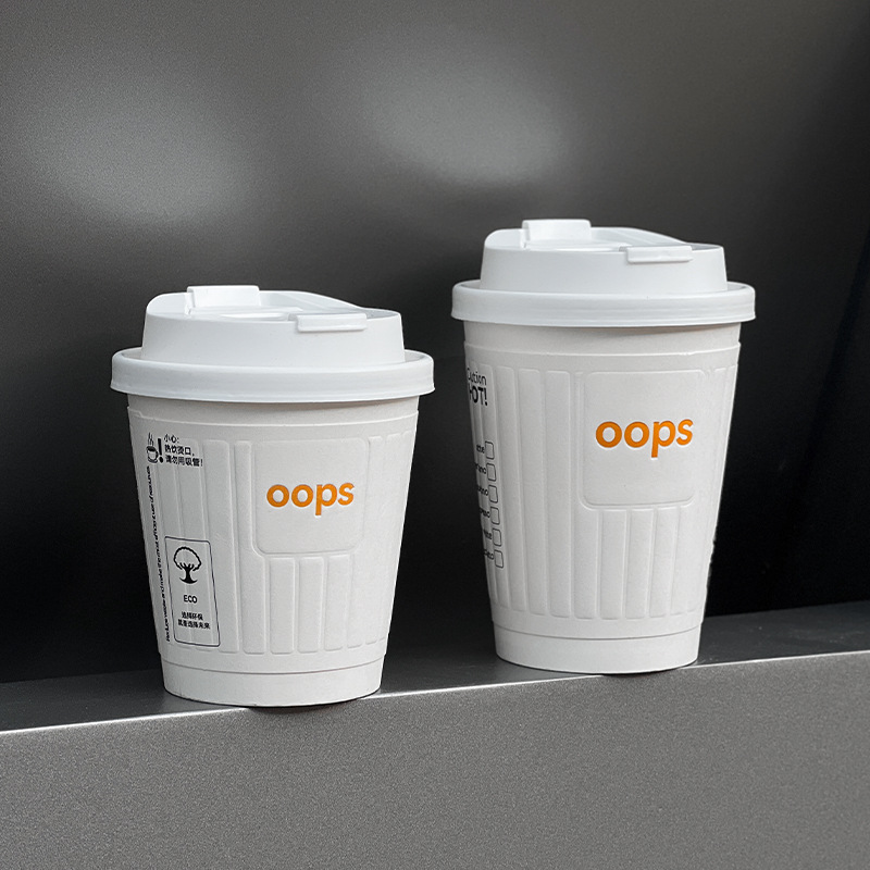 コーヒー紙コップミルクティー中空二重断熱蓋付き紙コップホットカップと生分解性カップ蓋PLA
