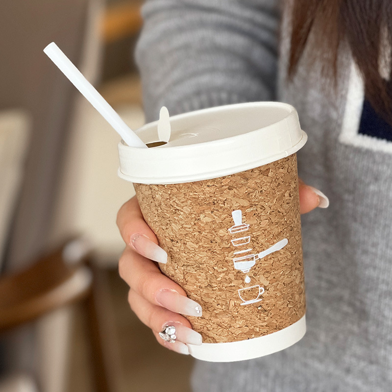 コルクカップ使い捨てコーヒーカップミルクティー紙カップ蓋付き携帯ホットドリンク販売パッケージ印刷ロゴ