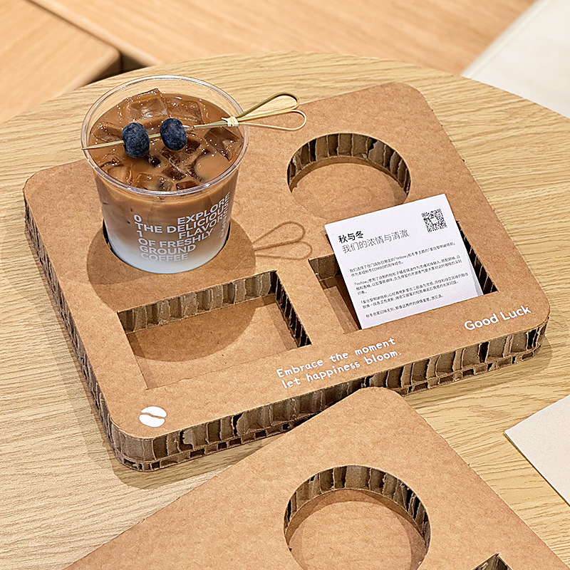 ネット赤コーヒーコンボカップトレイのハニカム板紙の段ボールの商用使い捨てミルクティーカップホルダーのロゴ