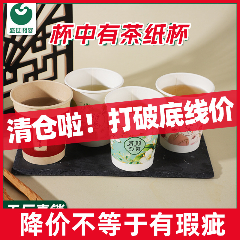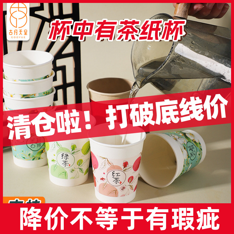 使い捨ての紙コップはお茶のコップを隠します。