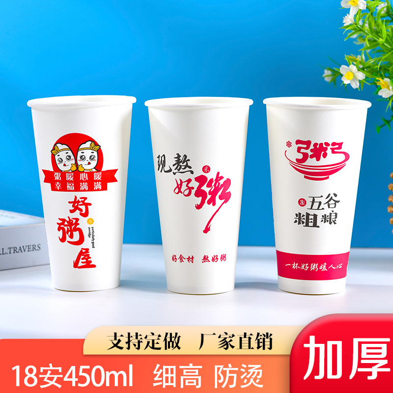 粥カップ蓋付き朝食紙コップ18a好粥道カップ栄養粥カップ食品級使い捨てカップ全箱卸売り