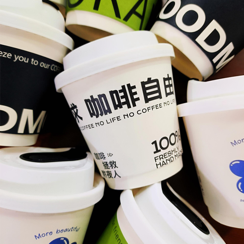 コーヒーカップ使い捨て高級高級洗練された蓋付き販売冷温飲料包装ミルクカップ商用紙コップ