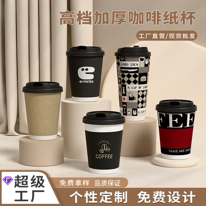カスタマイズされたコーヒーカップ使い捨てミルクティー紙カップ商業オフィス肥厚中空包装テイクアウトカップ蓋付きホットドリンクカップ