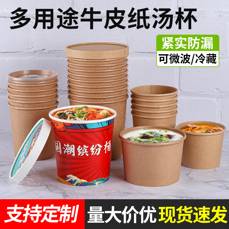 美貝現物8/12/16オンス使い捨て牛革スープ缶はファストフードスープカップ付き紙蓋付き粥カップを制定した