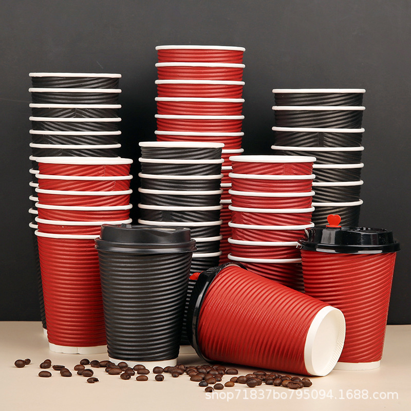 使い捨て紙コップ二重厚手赤段ボール黒コーヒー紙コップミルクティーテイクアウトパッケージカップ蓋付き