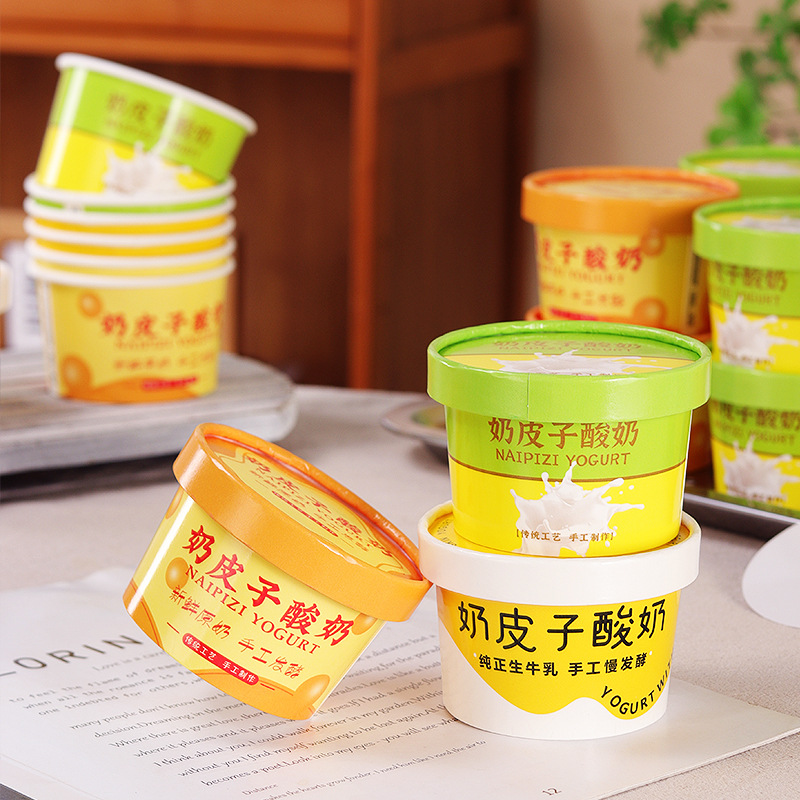 ミルクヨーグルト包装箱蓋付き増粘紙ボウルインターネット有名人使い捨て発酵可能な商業ヨーグルト包装紙カップ