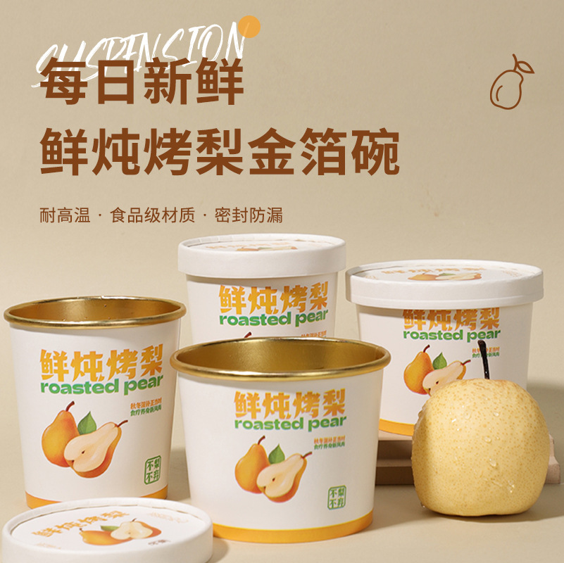 盛世湘容鮮煮込み焼き梨杯使い捨て金箔紙碗厚い蓋付き商用夜市に屋台を置いて桶を包装します。